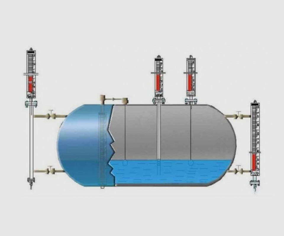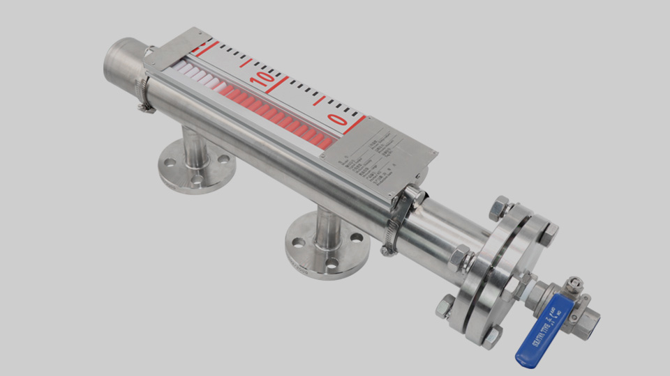 液位计根据浮力原理,浮子在测量管内随液位的升降而上下移动,浮子内的永久磁钢通过磁合作用,驱动红、白色翻柱翻转180液位上升时,翻柱由白色转为红色,下降时,翻柱由红色转为白色,从而实现液位的指示。